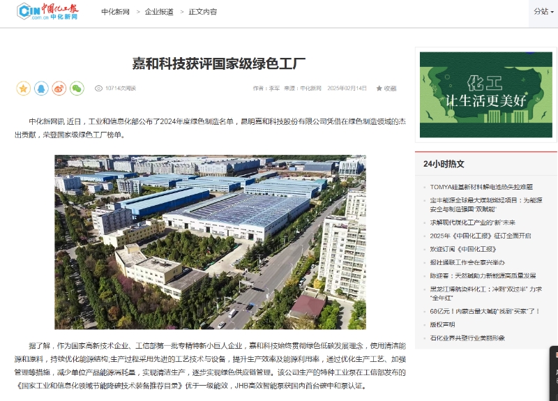 中化新網(wǎng)訊,近日,工業(yè)和信息化部公布了2024年度綠色制造名單,昆明嘉和科技股份有限公司憑借在綠色制造領(lǐng)域的本出貢獻(xiàn),榮登國(guó)家級(jí)綠色工廠榜單。