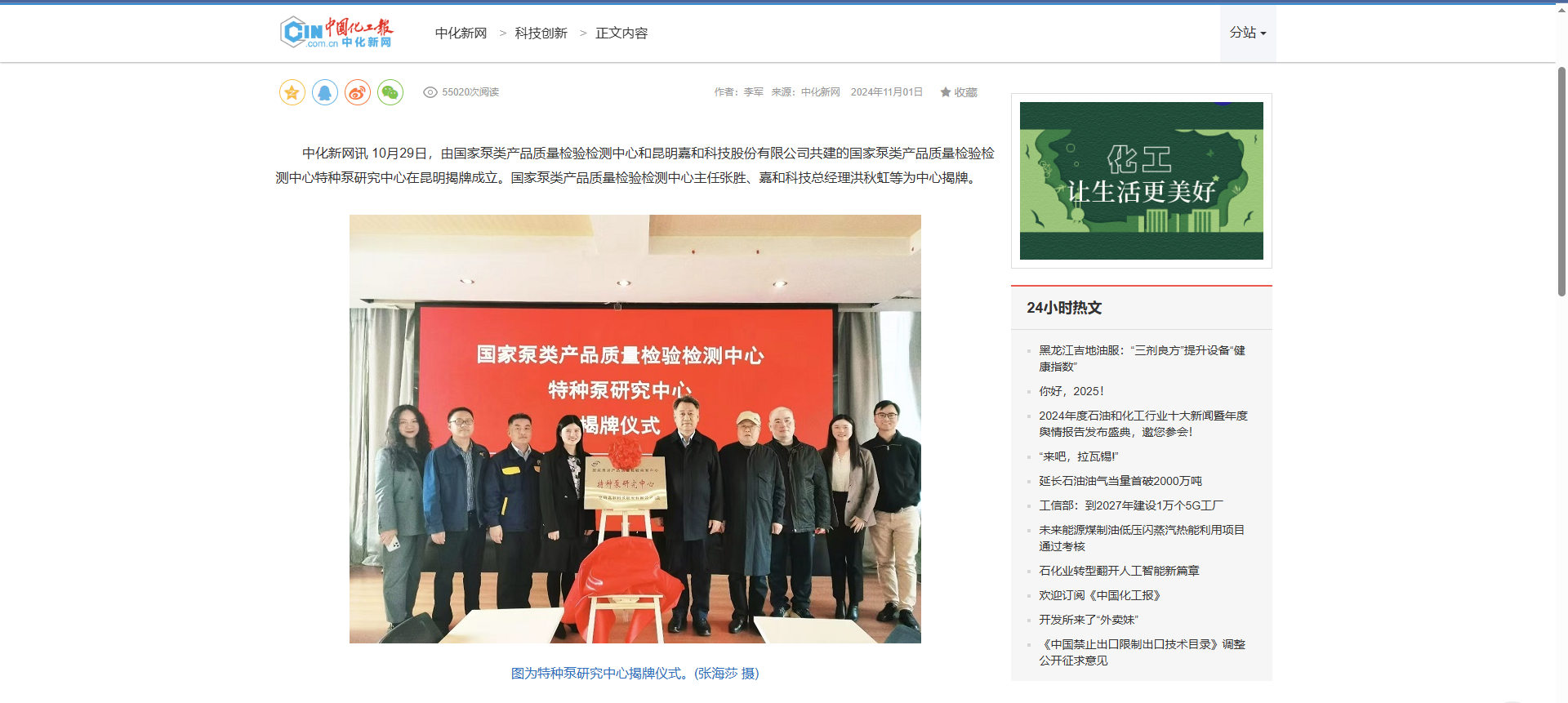 嘉和科技共建國(guó)家特種泵研究中心揭牌
