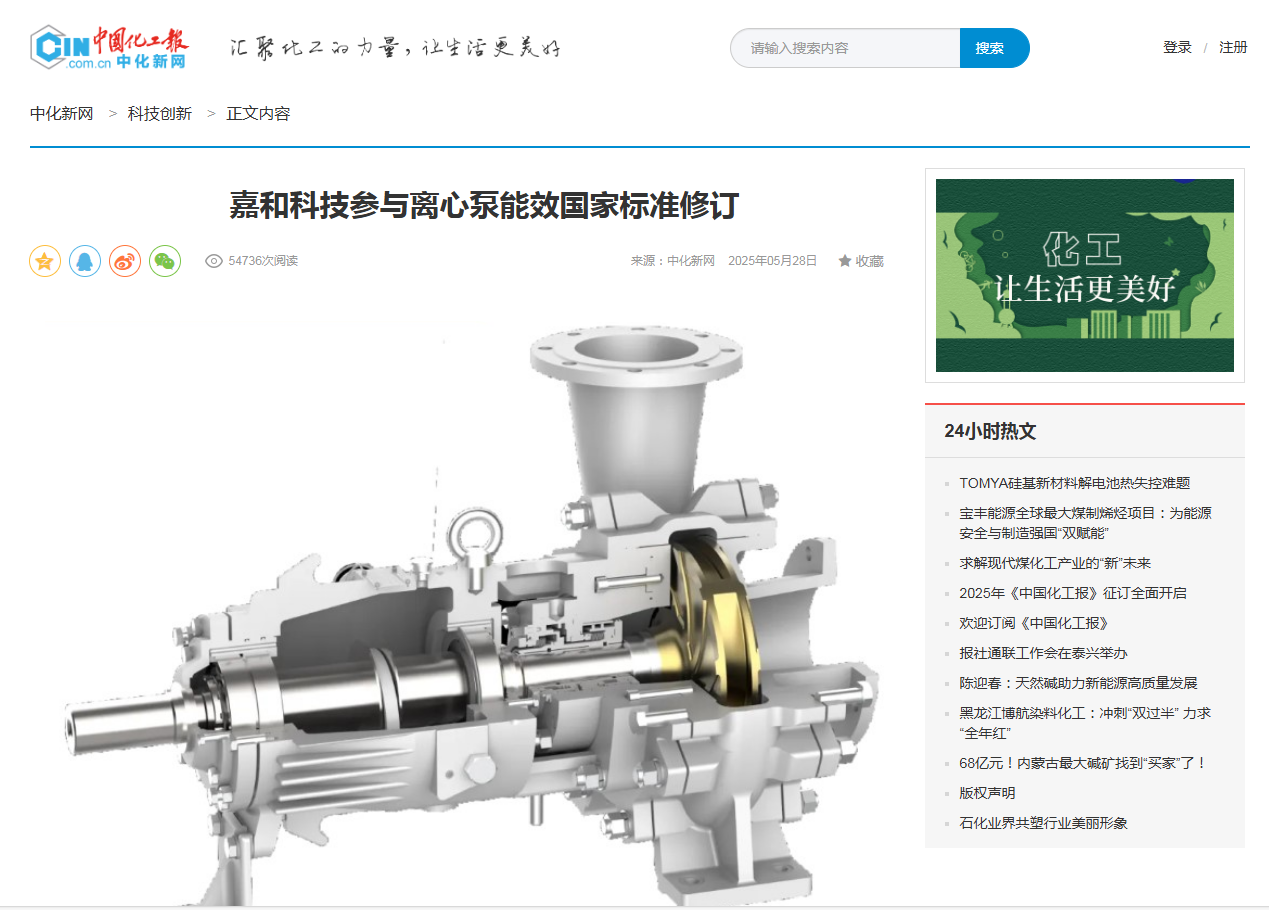 嘉和科技參與離心泵能效國(guó)家標(biāo)準(zhǔn)修訂