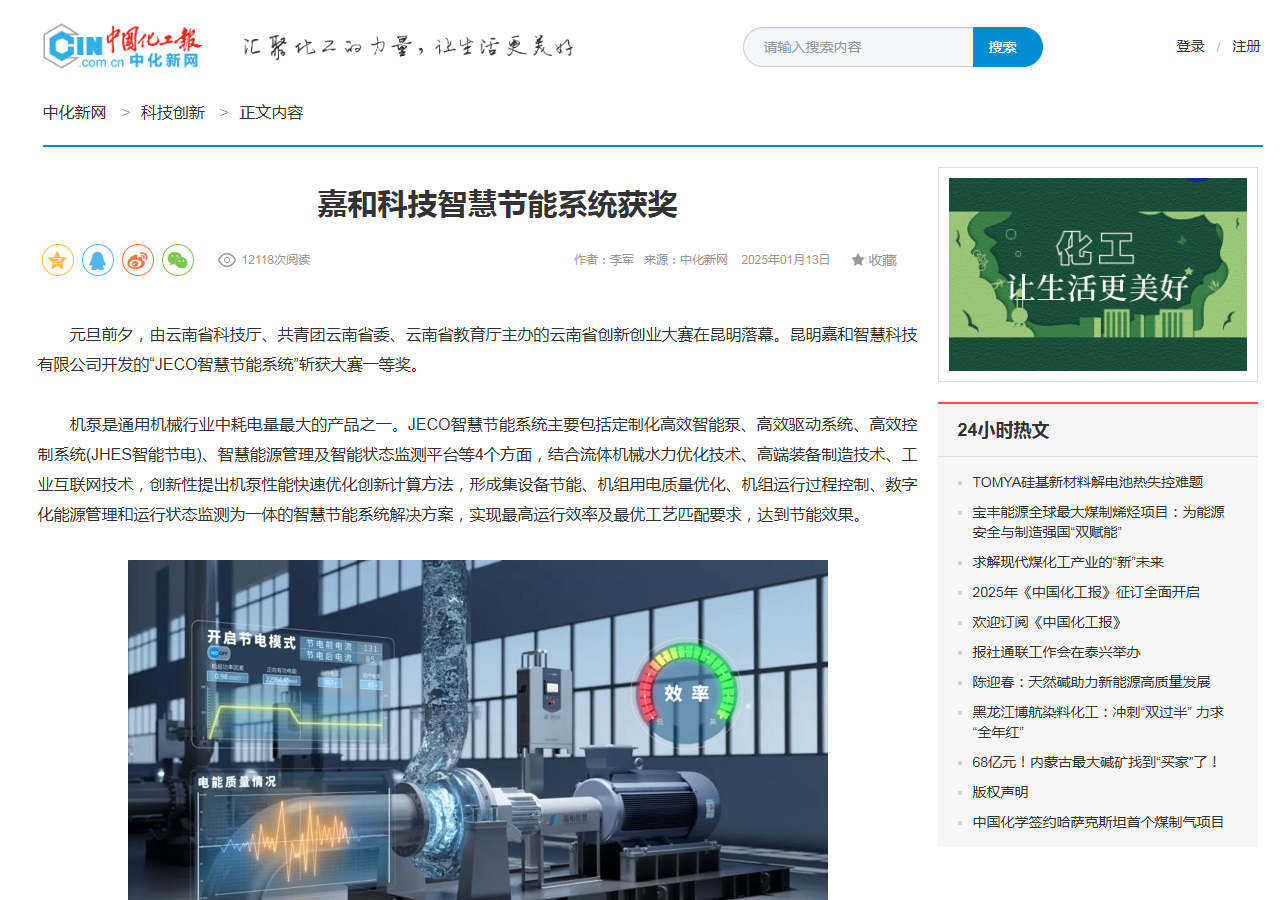 嘉和科技智慧節(jié)能系統(tǒng)獲獎(jiǎng)