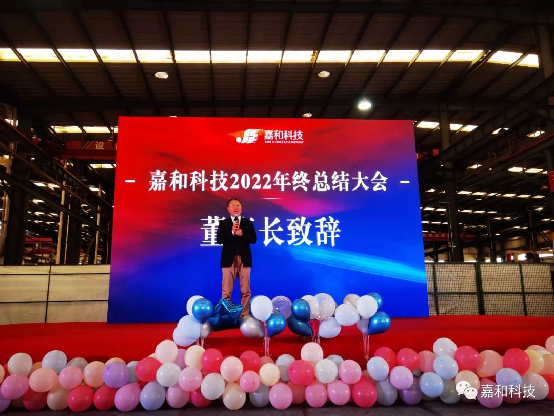 時光飛逝,歲月如梭,團結奮進的2022年悄然結束,1月29日,嘉和科技2022年終總結大會在嘉和生產車間成功舉行。全體嘉人歡聚一堂,共迎新春佳節,共話美好未來。